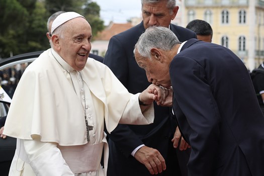 O Papa Francisco foi recebido, no aeroporto, pelo Presidente da República, Marcelo Rebelo de Sousa, enquanto milhares de pessoas se concentravam junto ao Palácio de Belém, o seu primeiro destino, para saudar o Sumo Pontífice.